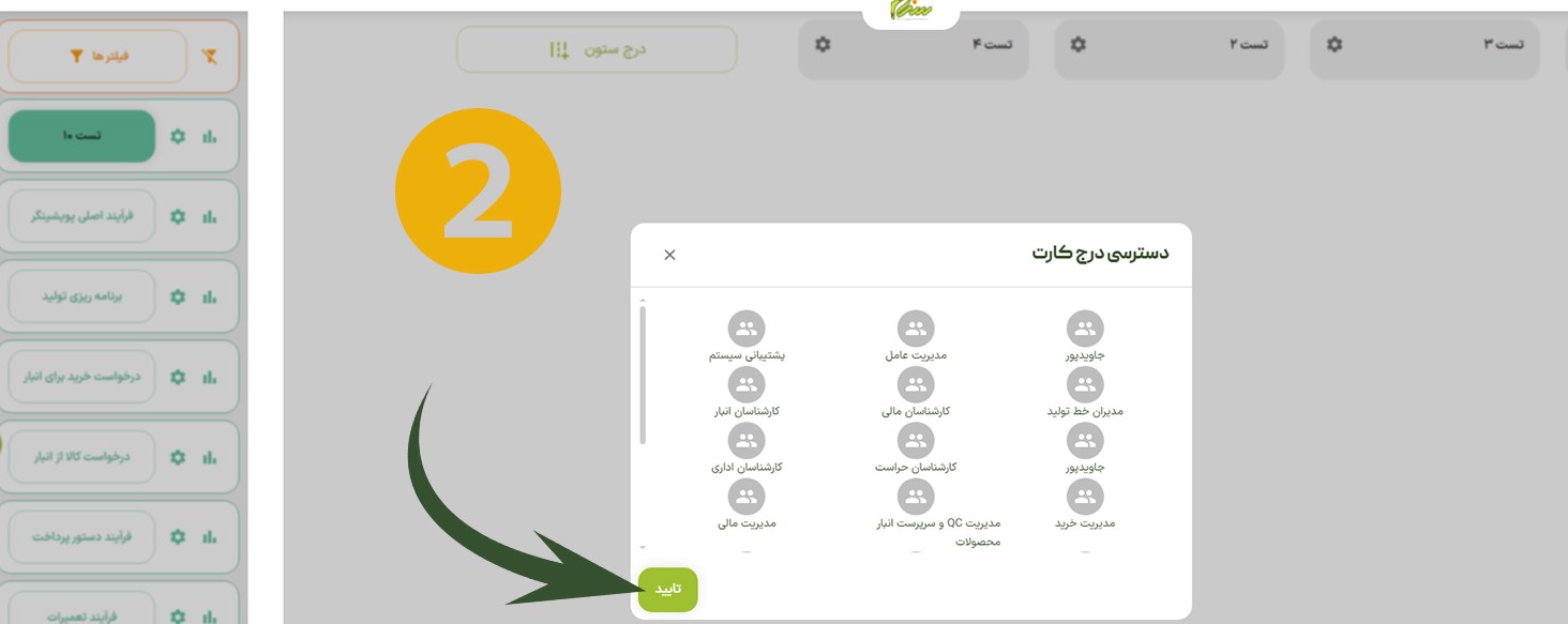 بعد از انتخاب کاربران، برای ثبت نهایی تنظیمات، روی گزینه تأیید کلیک میکنیم