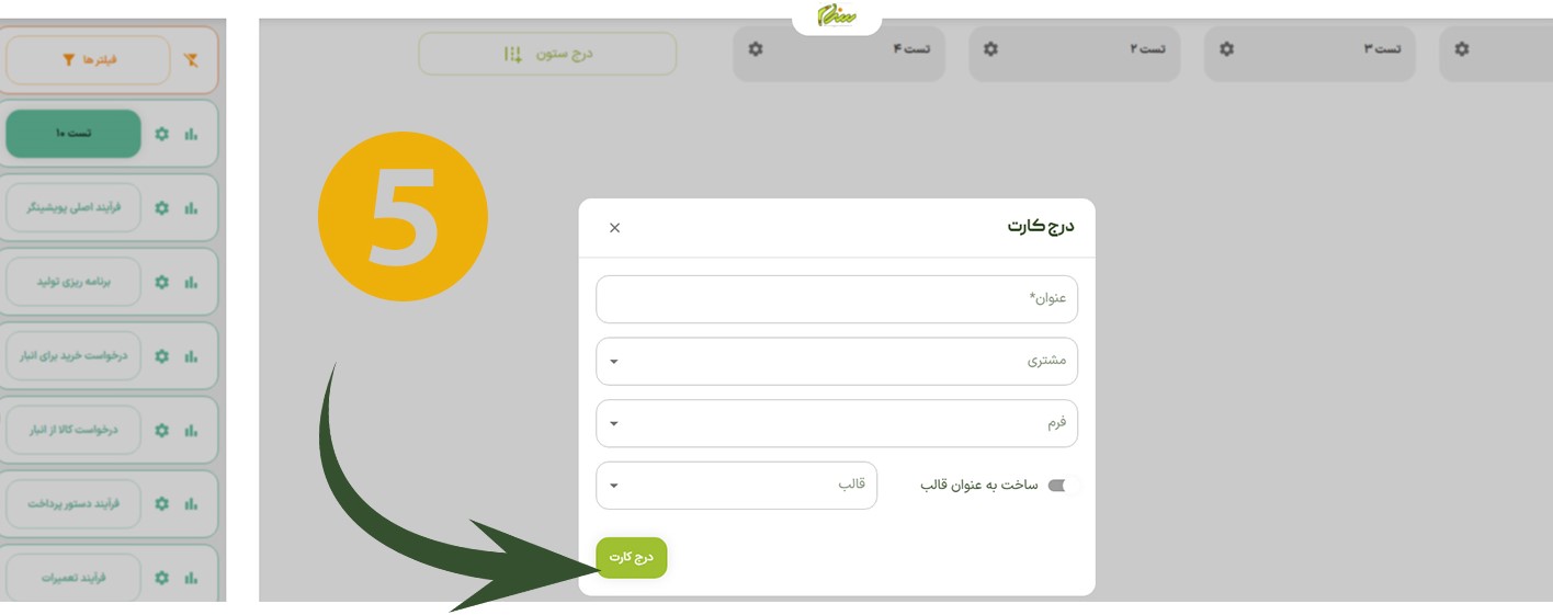 در نهایت، پس از تکمیل اطلاعات و انتخاب گزینه درج کارت، کارت مورد نظر با موفقیت در ستون انتخابشده ثبت میگردد