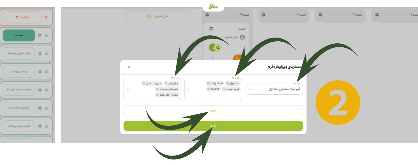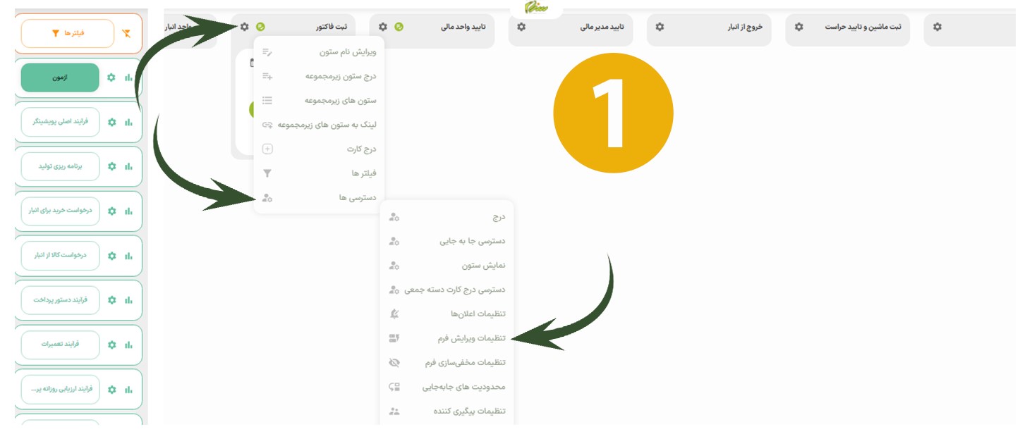 برای تعریف دسترسی ویرایش فرم، ابتدا وارد صفحه فرایند شوید