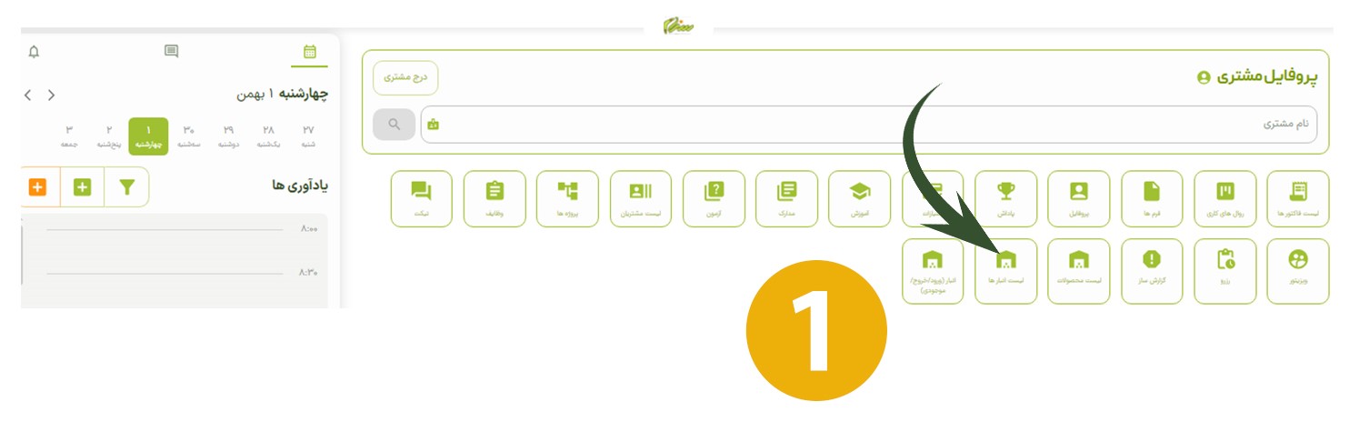 برای درج انبار، ابتدا وارد صفحه اصلی شوید