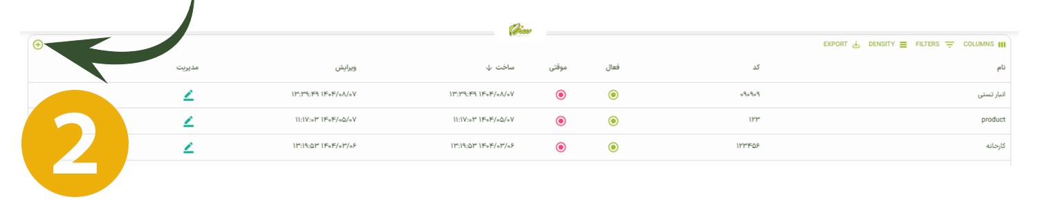 در این بخش، با تکمیل فیلدهای لازم می‌توانید اطلاعات انبار را ثبت کنید
