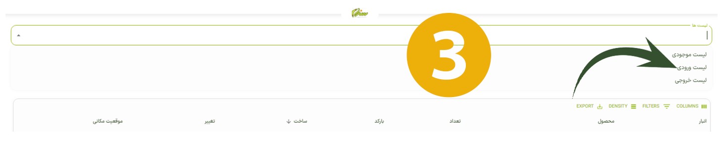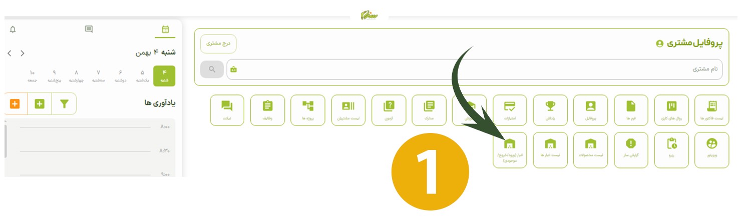 برای ورود محصول به انبار موردنظر، ابتدا وارد صفحه اصلی شوید