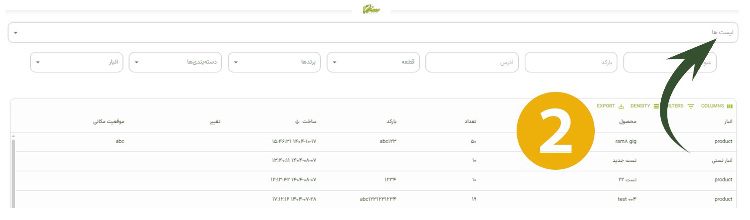 مطابق تصویر زیر، از میان گزینههای موجود، گزینه لیستها را انتخاب کنید