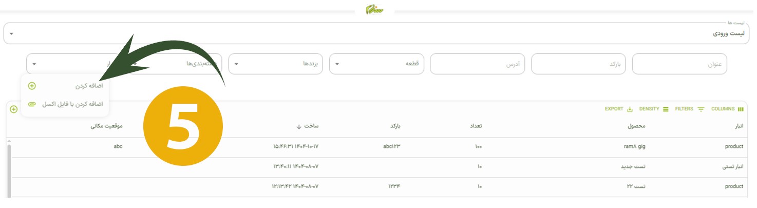 در این بخش، با انتخاب انبار و انتخاب محصول موردنظر و وارد کردن تعداد محصول، میتوانید محصول را به انبار موردنظر اضافه کنید
