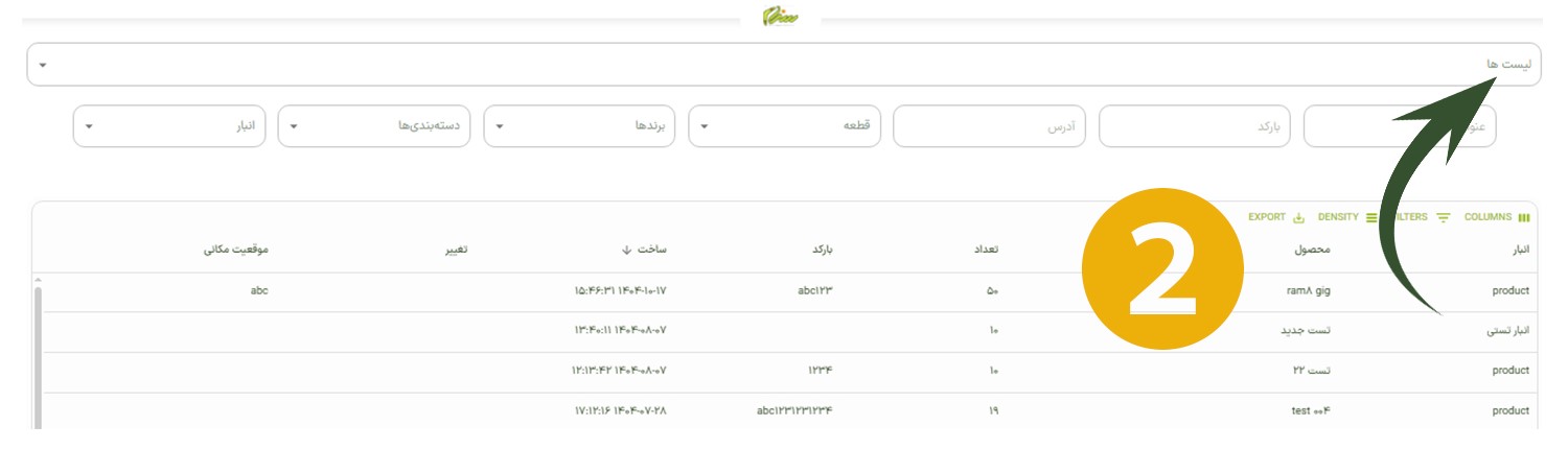 مطابق تصویر زیر، از میان گزینههای موجود، گزینه لیستها را انتخاب کنید