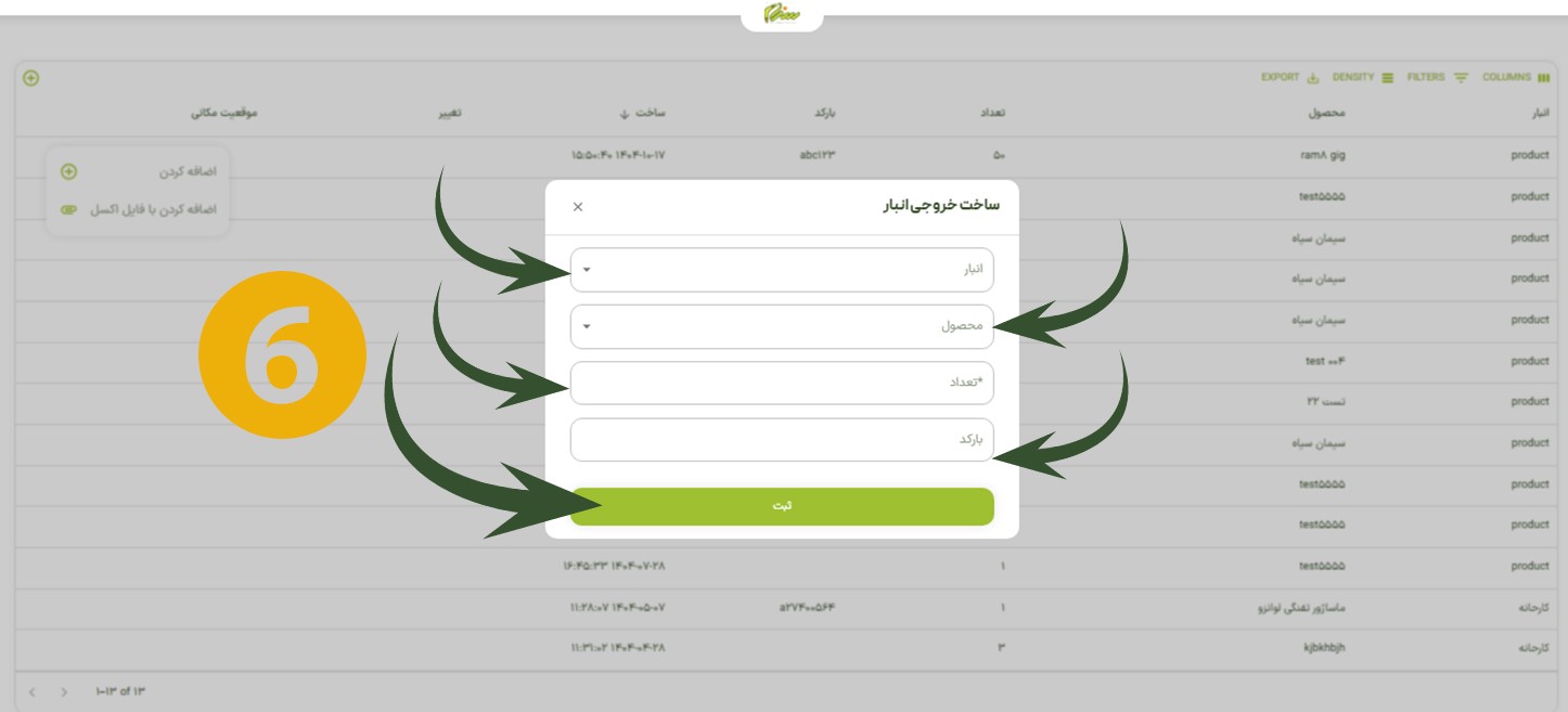 پس از تکمیل فیلدهای موردنیاز، روی دکمه ثبت کلیک کنید تا محصول از انبار انتخابشده خارج شود